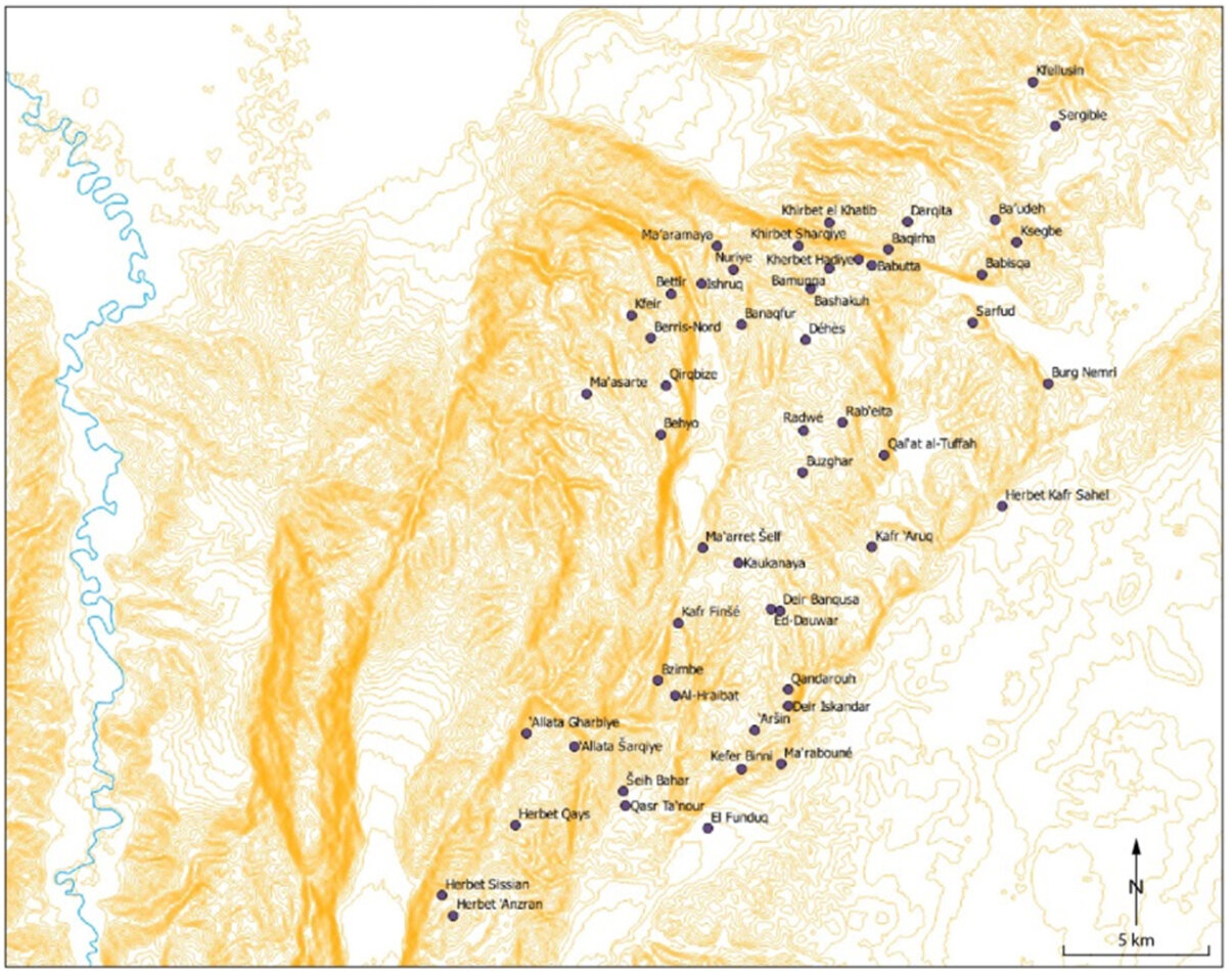 4- grâce au pôle cartographie du service de techniques archéologiques de la Maison de l’Orient de Lyon (USR 3439), nous pouvons intégrer certains de nos sites syriens sur des fonds cartographiques régionaux exploitables en 3 dimensions.