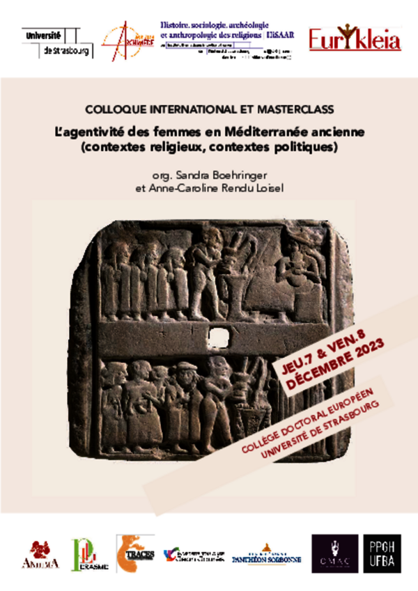 L'agentivité des femmes en Méditerranée ancienne (contextes religieux, contextes politiques) Colloque international organisé par Sandra BOEHRINGER et Anne-Caroline RENDU-LOISEL (Université de Strasbourg), 7-8 décembre 2023
