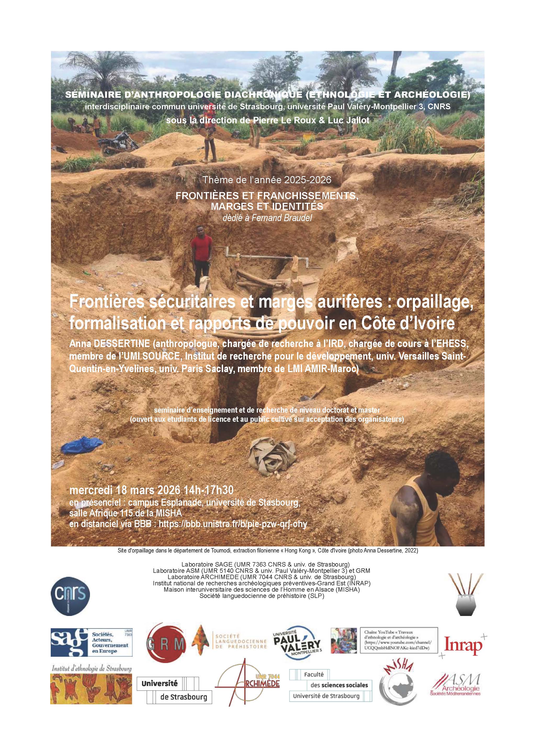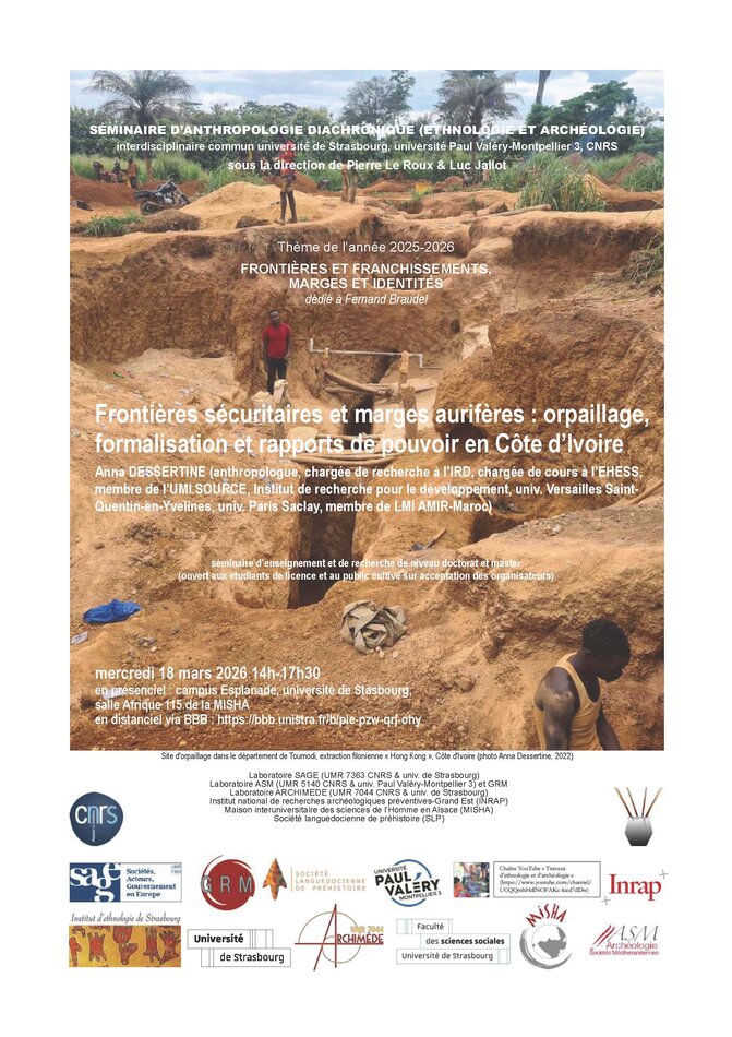 Séminaire d'anthropologie diachronique (ethnologie et archéologie), univ. de Strasbourg et univ. Paul Valéry-Montpellier 3, dirigé par Pierre Le Roux et Luc Jallot.