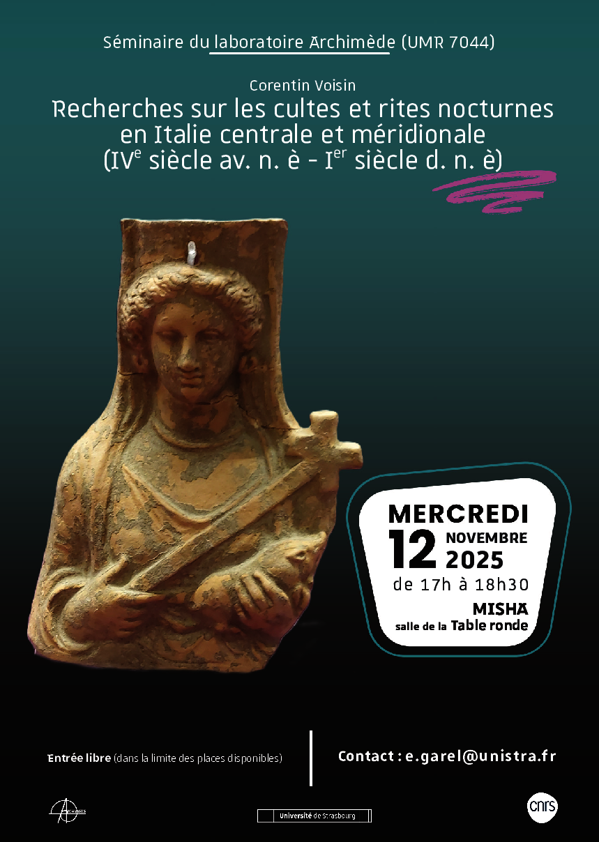 Séminaire du laboratoire : "Recherches sur les cultes et rites nocturnes en Italie centrale et méridionale (IVe siècle av. n. è - Ier siècle d. n. è) : un premier bilan"